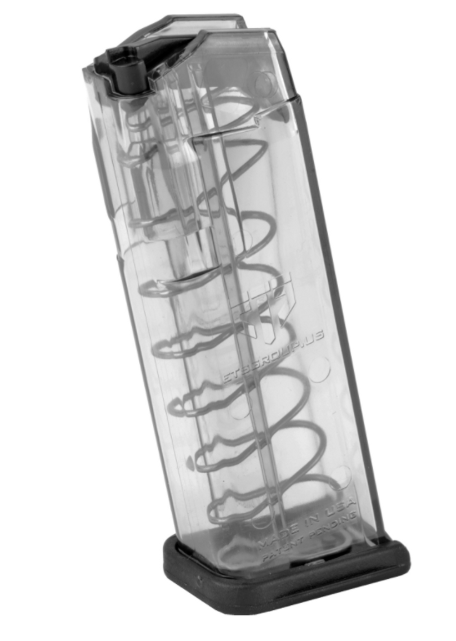 This ETS magazine features extreme impact resistance” creep resistant feed lips and a translucent body that allows you to see your ammo count and type. It is compatible with Glock and aftermarket floorplates.