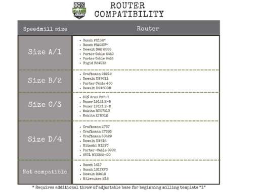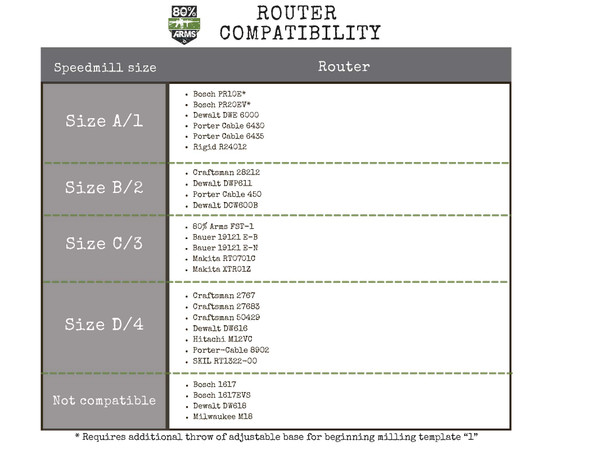 We have made this a direct-thread system, to make sure you have the most solid lock-up and repeatability when it comes to milling your lower to CNC level results. Because of this feature, each router will require a different size selected when you order.