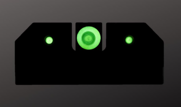 XS R3D Tritium Night Sights feature a traditional 3-dot tritium, notch and post sight picture. The rear is blacked out to increase contrast against the front sight. The front sight is available in orange or green and is equipped with our Ember Glow Dot Technology. Ember absorbs ambient light and glows in low light. The front tritium lamp charges the Ember dot making the front sight glow brighter than the rear, keeping focus down range. R3D sights are the brightest options for fast and accurate shooting in bright and low light.